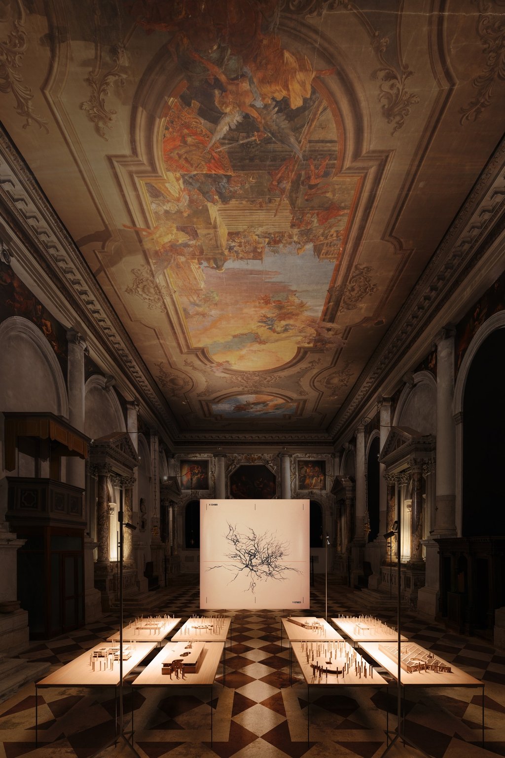 The exhibition starts with an installation of an uprooted tree stump as an emotional trigger, embodying the reality of what is lost—both physically and symbolically—when the roots that sustain life are severed. It also presents architectural models of late 20th- and 21st-century projects inspired by the natural environment. The experience is enriched by an audio-visual installation.