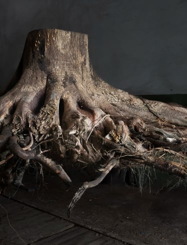 Ekspozicijoje akcentuojamas architektūros ir gamtinės aplinkos santykis, atsižvelgiant į tai per tvarumą, estetinės harmonijos prizmę bei fokusuojantis į augančio medžio inspiruotos architektūros kūrimą. Skirtingai nei tradiciniame modernistinės architektūros santykyje su medžiu, kur dominuoja žvelgimas į medį kaip į daiktą ar objektą, čia brandūs medžiai ir architektūra tampa vieniu. Paviljone pristatomi skirtingo laikotarpio ir kartų kūrėjų architektūros maketai, audiovizualinė-dokumentinė ir realaus mastelio natūrali medžio šaknų instaliacijos, susijungiantys į pasakojimą, kuriame kviečiama apmąstyti ryšio tarp medžio ir architektūros kūrimo svarbą pasitelkiant tvarumo, empatijos bendruomenių istorinės ir kultūrinės atminties išsaugojimui temas.