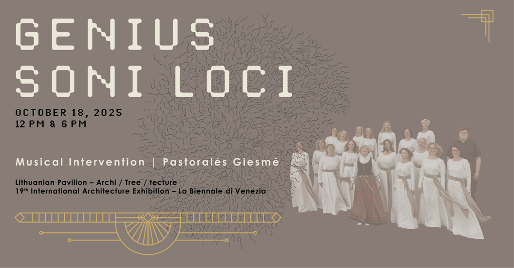 The Choir group by Pastoralės Giesmē unfolds as a living resonance within the Lithuanian Pavilion Archi | Tree | tecture — an encounter between architecture, nature, and sound. The Pavilion’s central image, the felled tree, evokes both loss and possibility: a reminder of the fragility of roots and the potential for regeneration. In dialogue with this idea, the musical intervention becomes a gesture of re-rooting — a reconnection through voice, breath, and harmony.